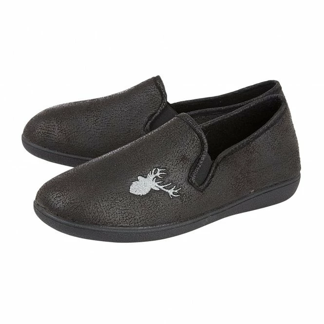 Focusing on comfort and wearability is the Lotus men’s Claude slipper. This traditional, full shoe, black slipper is crafted from faux leather and features an embroidered stag’s head on the upper. Practical features include discreet elasticated side panels helps to get them on/off with ease and a rubber outsole for enhanced durability. Comfort is also addressed by the incorporation of memory foam in-socks.