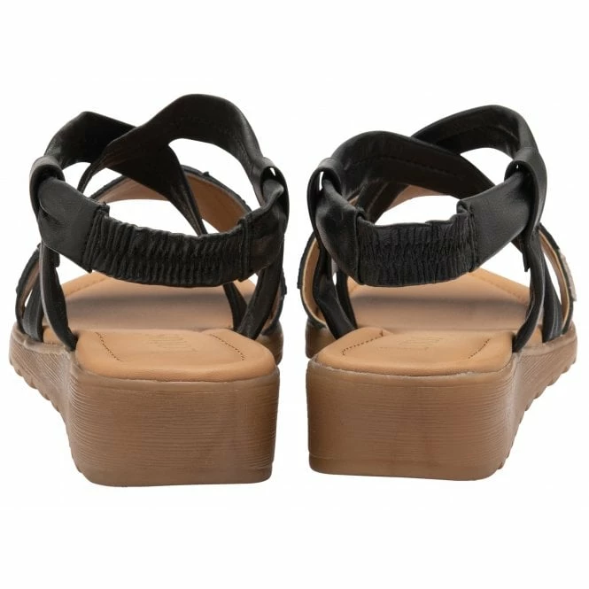 Introducing the Lotus Evette open toe sandal. Not only is this striking women’s sandal exceptionally comfortable, but it is also on-trend too. This women’s black sandal boasts a sumptuous leather upper that is enhanced by leopard and reptile prints that sit alongside metallic touches. Resting on a slight 2.5cm wedge heel that has a razor tooth finish and featuring an elasticated slingback, this made in Italy Lotus sandal will entice you to wear it on repeat all summer.