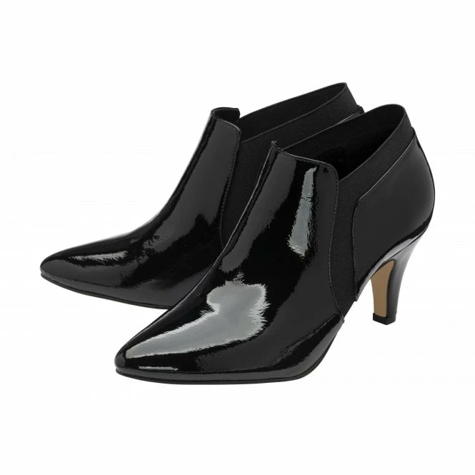 The Lotus Kristina shoe-boot is exceptionally versatile and certainly one to behold. This sleek pointed toe shoe-boot is constructed on a 7.5cm stiletto heel and encompasses a striking black patent upper with a discreet elasticated collar and side panels. We’ll be wearing Kristina around-the-clock this season!