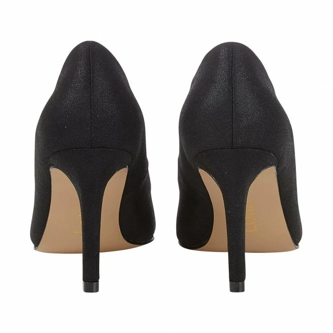 Truly stunning is the Lotus Radiance women’s court shoe. The shimmering textile upper is accentuated by a gem encrusted adornment, which sparkles beautifully when the light catches it.  This black pointed toe, heeled pump sits beautifully on a slender 9cm stiletto heel. Complete your glamorous looks and coordinate the Radiance court shoe with the Lotus Lole clutch bag.