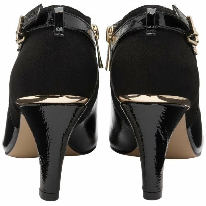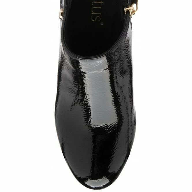 A stylish offering that is exceptionally wearable is the Lotus Ramona shoe-boot. This Lotus women’s black shoe-boot rests on a 8.5cm heel and features a glossy patent upper, plus a textile covered heel counter that is accentuated by a decorative buckle strap. This Lotus ladies’ shoe-boot that is crafted with an almond pointed toe will add the perfect finish to tailored looks.