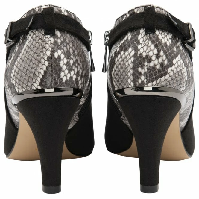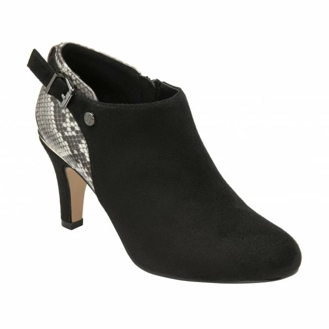 A stylish offering that is exceptionally wearable is the Lotus Ramona shoe-boot. This Lotus women’s black shoe-boot that rests on a 8.5cm heel features a sumptuous textile upper, plus a snake printed heel counter that is further accentuated by a decorative buckle strap. This Lotus ladies’ shoe-boot that is crafted with an almond pointed toe will add the perfect finish to tailored looks.