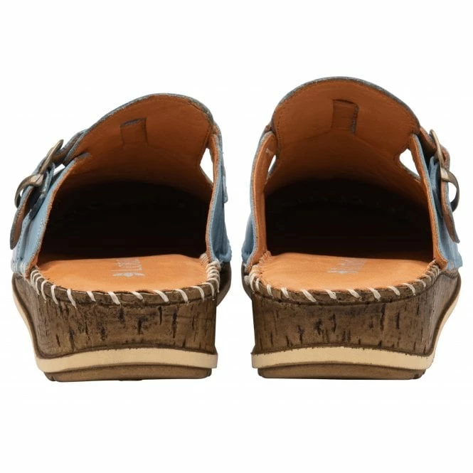 The perfect pairing to casual looks is the Lotus Kerry mule. This women’s blue slip-on shoe takes styling references from a closed toe clog to ensure that it’s trend relevant. This backless silhouette is constructed from leather and incorporates a leather lining and in-sock, a cushioned insock, buckle detailing and a cork effect sole unit that is offset by blanket stitching to make it a firm favourite Lotus style this season.