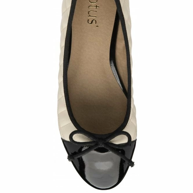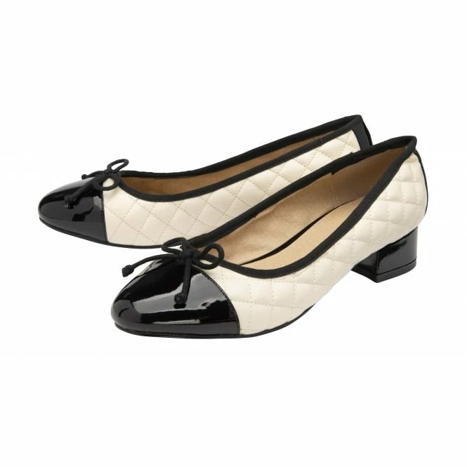 Making its debut in the Lotus shoe collection is the Ivy pump. This feminine cream shoe takes its styling cues from a ballerina, but it is given a new season spin. Boasting quilted effect stitching on the faux leather upper, a patent black toecap, a delicate bow feature and contrast binding, but it is the wearable 3cm block heel that elevates this Lotus women’s shoe and gives it a fresh aesthetic.