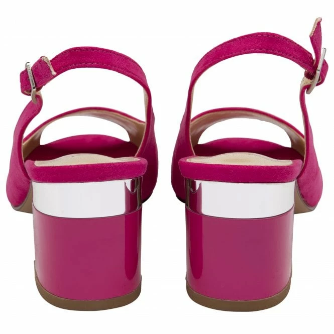 Set to slide seamlessly into your hard-working wardrobe is the Lotus Evelyn slingback shoe. This understated fuchsia peep-toe shoe is crafted from microfibre, it encompasses an adjustable slingback and a contemporary 6.5cm block heel that is enhanced by a decorative metal plate and trim. This Lotus women’s fuchsia shoe coordinates effortlessly with the Claire handbag.
