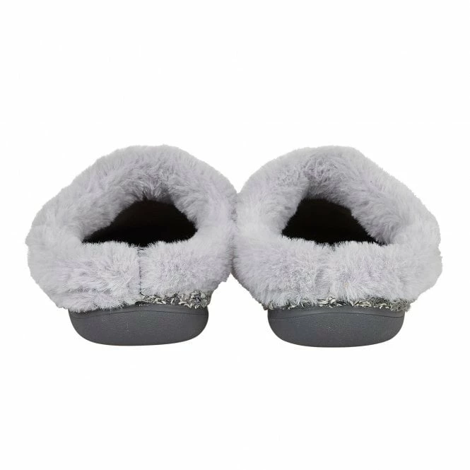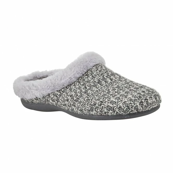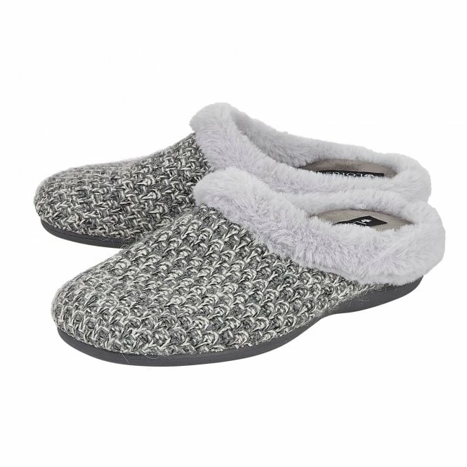 Incredibly comfortable and a delight to wear is the Lotus Ada slipper. Boasting memory foam in-socks to make this Lotus women’s grey slipper exceptionally comfortable, a rubber sole unit to improve durability and a multi-coloured textile knitted upper to add flair. What’s more, this feminine Lotus slipper encompasses a sumptuous grey faux fur collar to give extra warmth during the colder months.