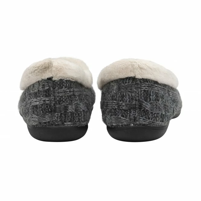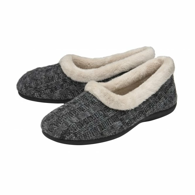 A practical and stylish footwear solution for around-the-home is the Lotus Dolores full shoe slipper. Enhancing the cable knitted upper is a sumptuous faux fur collar. This is teamed with an incredibly soft lining and a memory foam in-sock that delivers exceptional comfort to ensure that this women’s grey slipper is a delight to wear. The Dolores slipper also features a rubber outsole for enhanced durability.
