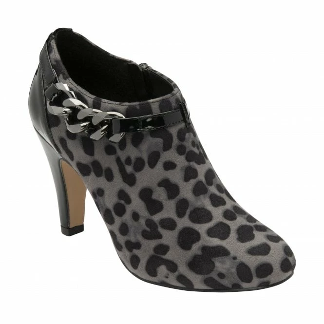 Achieve enduring style with the women’s Lotus Alison shoe-boot. Crafted with microfibre and featuring a soft almond pointed toe, a glossy patent heel counter and a 9cm stiletto heel, but it is the maximalist chain trim that gives this grey women’s shoe-boot a distinctive and contemporary edge.