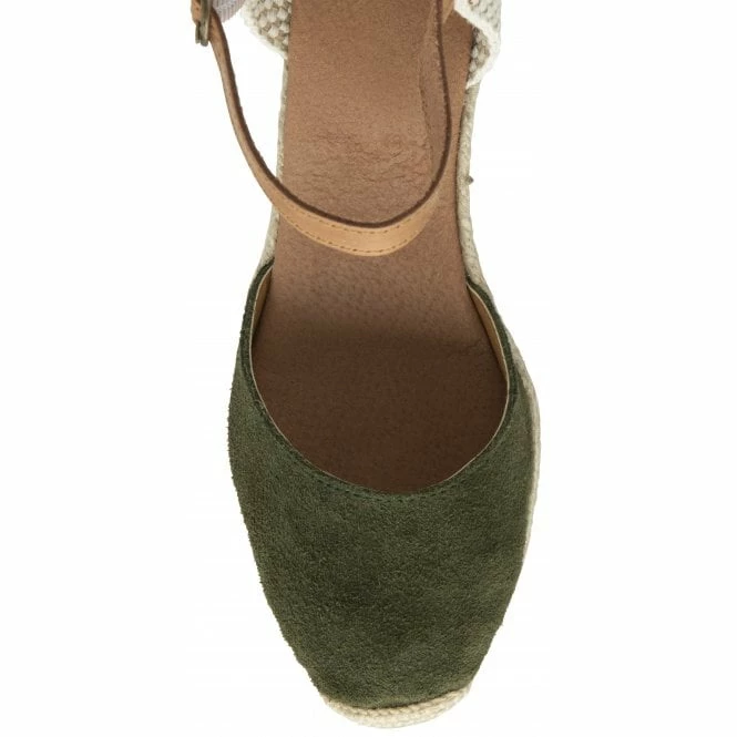 Warm weather looks call for the Lotus Antonella espadrille wedge shoe. Boasting a sumptuous suede upper, an adjustable ankle strap and nestled on an on-trend fashionable 7cm jute wrapped wedge heel, this Lotus women’s khaki espadrille shoe is certainly destined to be worn on repeat.