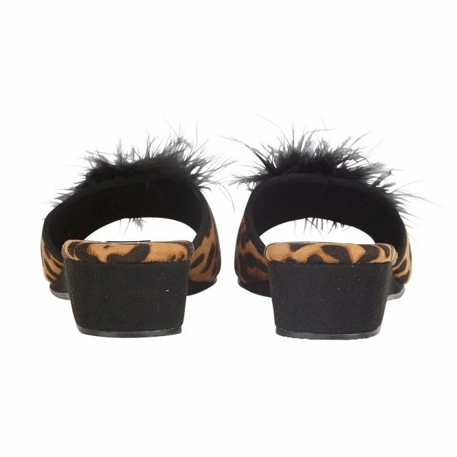 The ever popular Lotus Allure slipper gets an update to further accentuate its glamorous flair and appeal. As per its predecessors a striking feather pom-pom is incorporated, but this season’s new style sees the addition of sparkling diamantes adorning the microfibre upper. This open toe, leopard printed, women’s Lotus slipper also boasts a subtle wedge heel and an extra padded cushioned in-sock to make it exceptionally comfortable.