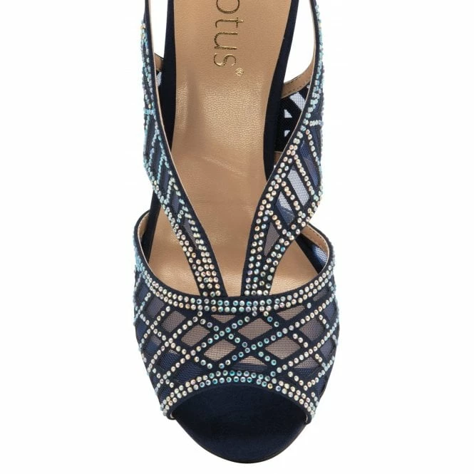 Add a high-octane finish to your evening and special occasion looks with the Lotus Natalia sandal. Intricate laser cut outs backed in fine mesh and accentuated by sparkling diamantes gives this peep toe, heeled sandal an iconic finish. There’s no doubt that this Lotus women’s navy sandal will certainly amp up a multitude of looks. Natalia coordinates with the stunning Lotus clutch bag Nara.