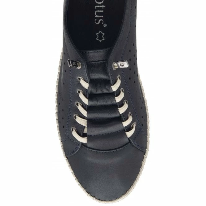 The Lotus Kamari shoe delivers unrivalled product styling and comfort. Key features include punch work detailing on the leather upper, partially concealed elasticated laces and a crisp white sole unit that is enhanced by a blanket stitch trim. This Lotus women’s navy shoe is also leather lined and features cushioned insoles, so it’s exceptionally comfortable and perfect for slipping on come the weekend as it will add the perfect finish to casual looks.