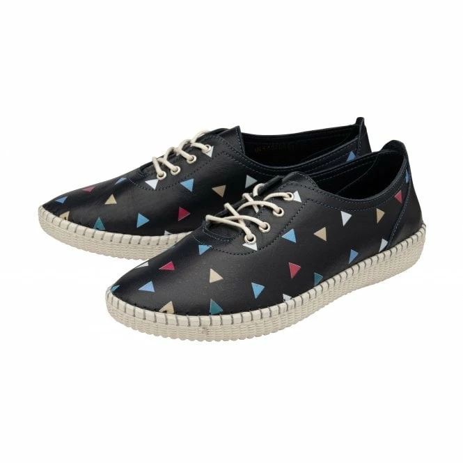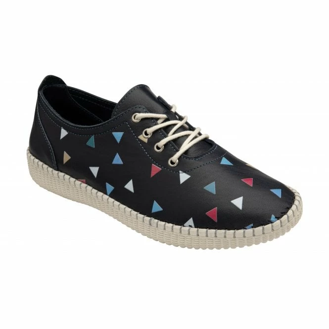 It’s easy to see why the Lotus Kay shoe will quickly become a go-to on dress down days. This casual navy shoe boasts a multi-coloured graphic print that adds a fun and unique twist to this lace-up shoe. Boasting a leather upper and lining, a cushioned insole and resting on a crisp white sole unit that is finished with a blanket stitch trim, this Lotus women’s shoe is highly distinctive and exceptionally wearable.