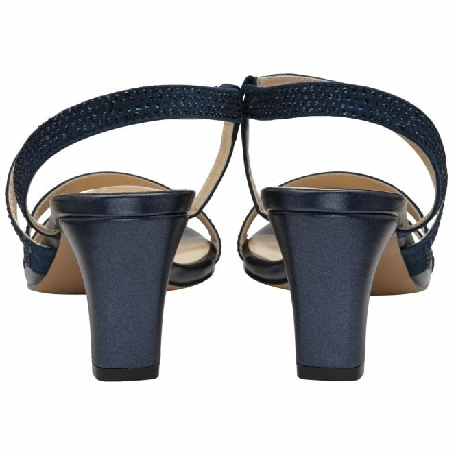 Give all your special occasion looks a sparkly finish with the Lotus Bernadette open toe sandal. Multiple pearlised straps that entwine up the foot are beautifully enhanced by delicate diamantes that will shimmer beautifully as the light catches them. Nestled on a 7.5cm rectangular heel, this navy women’s slingback sandal is the perfect pairing to weddings, garden parties and glamorous evening soirees. Bernadette also coordinates with the Lotus Raine handbag, which will add the perfect finish to any look.
