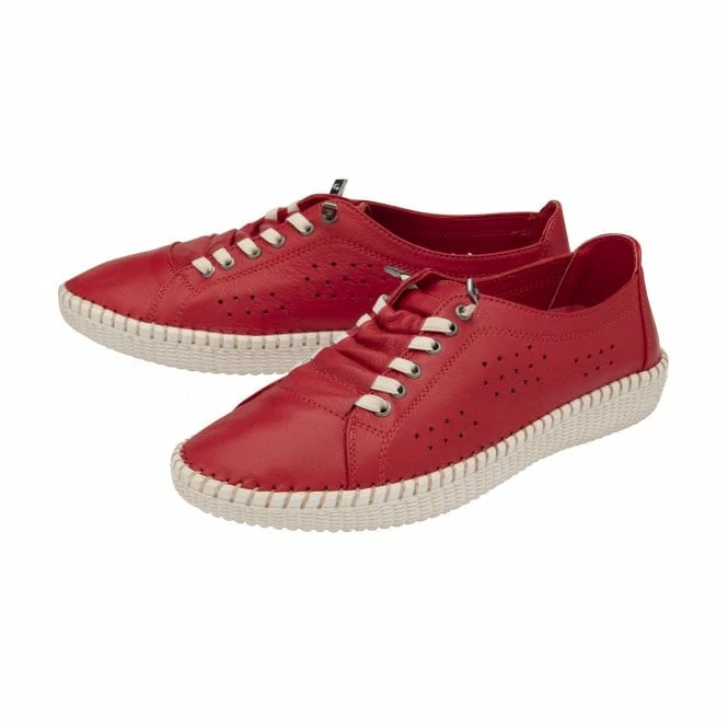 The Lotus Kamari shoe delivers unrivalled product styling and comfort. Key features include punch work detailing on the leather upper, partially concealed elasticated laces and a crisp white sole unit that is enhanced by a blanket stitch trim. This Lotus women’s red shoe is also leather lined and features cushioned insoles, so it’s exceptionally comfortable and perfect for slipping on come the weekend as it will add the perfect finish to casual looks.