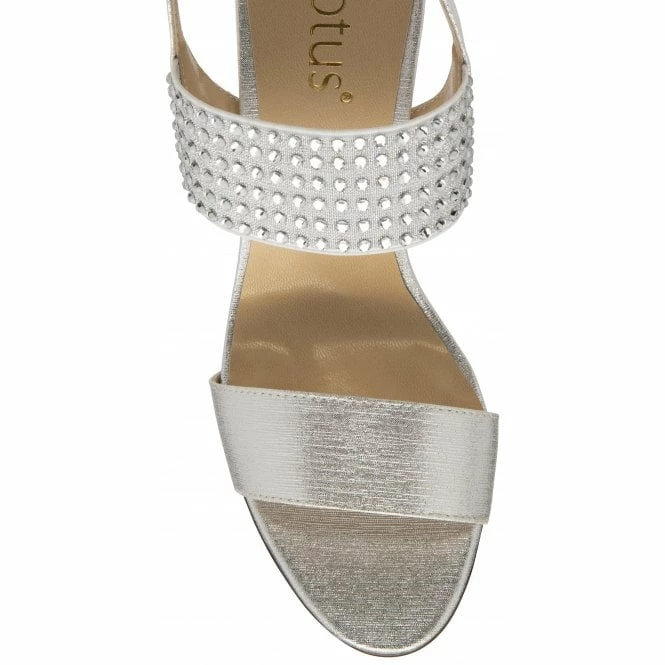The glamorous Lotus Aurora sandal will stylishly see you through wedding season now, summer cocktail parties and festive soirees by the end of the year! Distinguished by the sparkling diamantes that are captured on the wide elasticated strap, this silver open toe sandal is a head turner! Featuring an adjustable slingback for an enhanced fit and a wearable 8cm stiletto heel, this Lotus women’s sandal will complete any glamorous look especially when it’s paired with the Lotus Claire clutch bag.