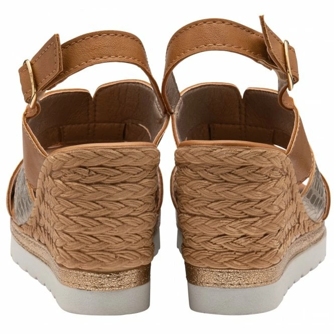 A warm-weather staple that is reminiscent of styling from the ‘70s is the Lotus Luisa wedge sandal. A trio of wide straps gives ample foot coverage, plus this Lotus open toe sandal has a highly distinctive finish due to the metallic mock-croc printed detailing and the on-trend 8cm raffia covered wedge heel. This women’s white sandal will certainly add a faultless finish to an abundance of summer looks.