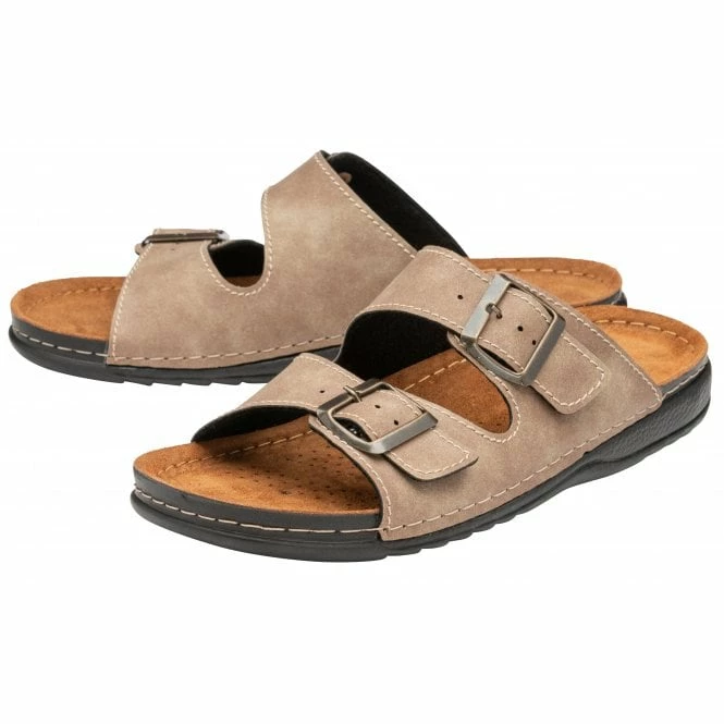 Perfect for casual summer days is the Lotus George mule sandal. Constructed with a padded leather footbed and secured with two buckle fastenings that have a burnished finish, this men’s slip-on taupe sandal is a practical and stylish choice for laidback looks at a weekend or on holiday.Â