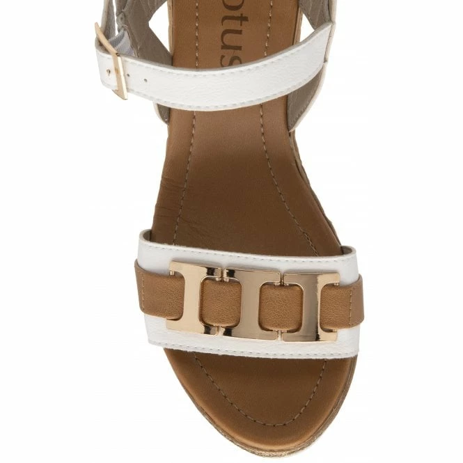 The perfect pairing to warm weather looks is the highly versatile Lotus Carina wedge sandal. This women’s open toe white sandal encompasses polished metal hardware on the upper, an adjustable ankle strap to help secure the foot and it’s finished with an on-trend 8cm raffia covered wedge heel to make it a highly wearable summer essential!