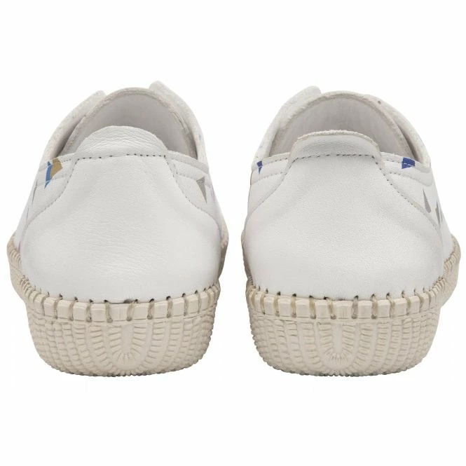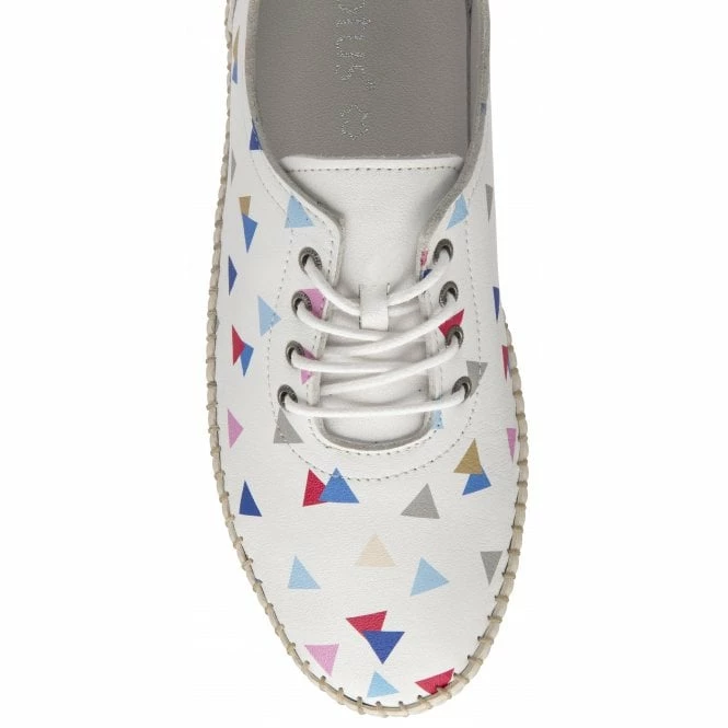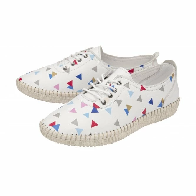 It’s easy to see why the Lotus Kay shoe will quickly become a go-to on dress down days. This casual white shoe boasts a multi-coloured graphic print that adds a fun and unique twist to this lace-up shoe. Boasting a leather upper and lining, a cushioned insole and resting on a crisp white sole unit that is finished with a blanket stitch trim, this Lotus women’s shoe is highly distinctive and exceptionally wearable.