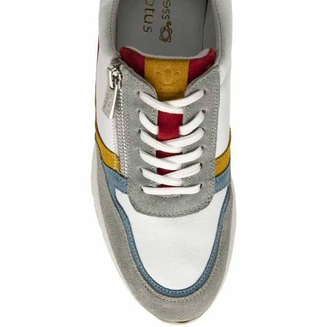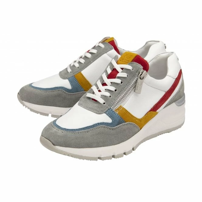 Bringing to life the colour blocking trend that has graced the catwalks is the Stressless by Lotus Suzuka trainer. This women’s lace-up sneaker makes a bold statement, as highlights of red, yellow and blue contrast against the white and grey panels on the premium leather and suede upper. This remarkable lightweight sneaker that rests on a 4.5cm wedge heel doesn’t just tick the on-trend box, it is also delivers comfort. A padded ankle collar and shock absorbing properties within the cushioned insock have also been incorporated to ensure this women’s Stressless by Lotus trainer is at the height of wearability.