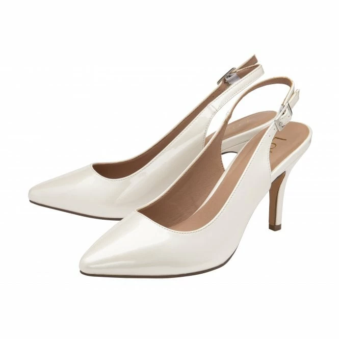 When a shoe is not only exceptionally comfortable but highly versatile, then you know it’s going to be in high demand and the Lotus Remy court shoe certainly will be! This Lotus women’s white court shoe boasts a pearlised patent upper, a cushioned insole, an adjustable slingback and an 8.5cm stiletto heel. This Lotus heeled pump is the perfect accompaniment to special occasion looks, but it is also the ideal pairing to everyday styling. If you are looking for a matching shoe and bag combo, then team the Remy court shoe with the Lotus Raine clutch bag.
