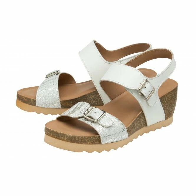 Add a playful twist to your summer looks with the Lotus Brynlee sandal. A metallic zebra print has been captured on the toe strap, alongside an adjustable buckle to give this women’s open toe Lotus leather sandal a striking aesthetic. An adjustable fastening white ankle strap, an on-trend serrated sole unit and a 6cm cork effect wedge heel have also been incorporated on this stunning summer essential style.